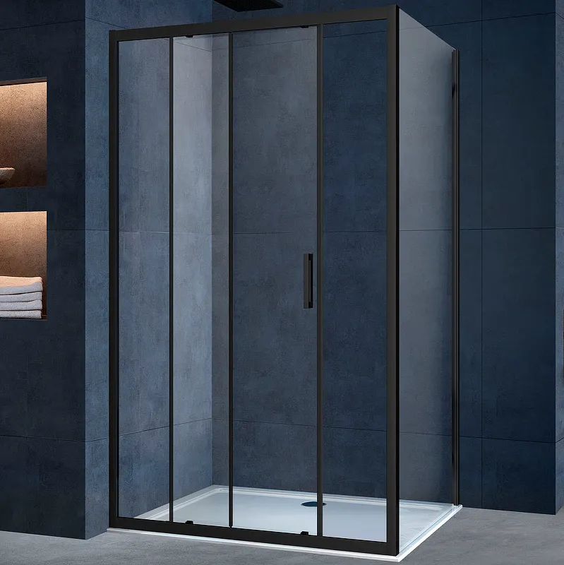- Надежные материалы: Алюминиевый черный профиль обеспечивает прочность и долговечность, а закаленное стекло толщиной 6 мм — безопасность.