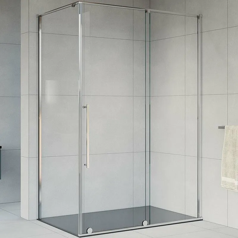 - Надежный материал: Профиль из алюминия с хромированным покрытием не подвержен коррозии, а прозрачное закалённое стекло толщиной 8 мм обеспечивает безопасность.