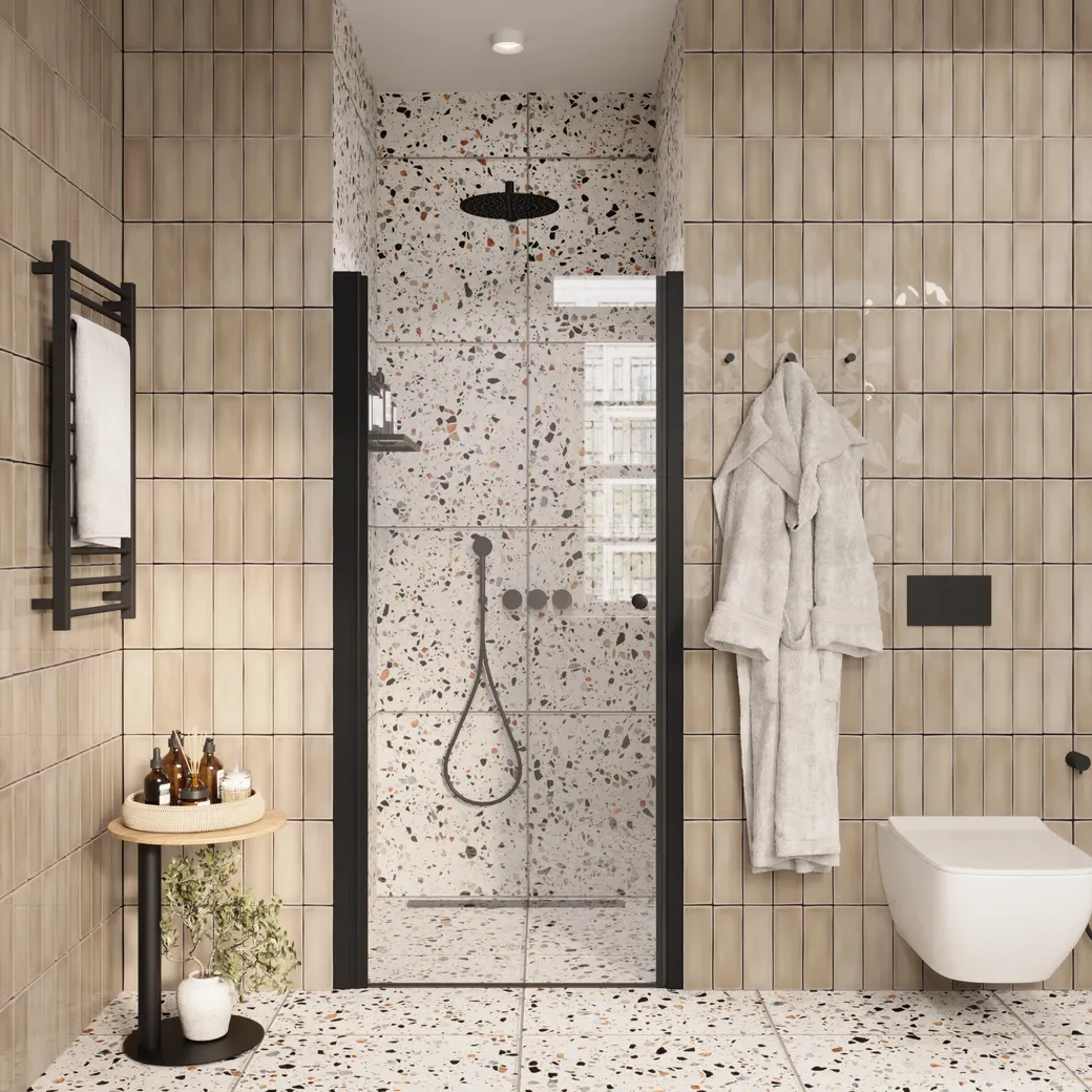 Душевая дверь в нишу PARLY DE70B Размер: 70х185 см Дверь имеет уплотнители под углом 45 градусов. Дверь открывается только в одну сторону. Распашная дверь образует вход комфортной ширины. Модель из прозрачного закаленного стекла (5 мм). Полотно из закаленного стекла устойчиво к случайным ударам. В случае битья, стекло рассыпается на множество мелких граней с тупыми концами. Полированный черный профиль из алюминия не деформируется при высокой влажности и смене температуры. Ширину можно регулировать за счет увеличения алюминиевого профиля в пределах 69,5–71,5 см Достоинства душевой двери: Защищает ванную комнату от брызг воды. Пол возле душевой зоны остается сухим, что снижает шансы поскользнуться после водных процедур. Душевая дверь помогает зонировать помещение на отдельные функциональные участки. Двери из стекла практичны, долговечны и гигиеничны. На стеклянной поверхности не скапливаются бактерии и грязь, полотно легко чистить. Дизайн двери дополнит стилистическую задумку оформления ванной. При правильном уходе душевая дверь долгие годы сохраняет эстетический внешний вид. Для чистки необходимо использовать мягкие губки и салфетки, специальные жидкие чистящие средства. Нельзя использовать жесткие губки и абразивные порошки, которые оставляют мелкие царапины. Как результат, в них скапливается грязь и размножаются бактерии. Поэтому важно правильно чистить стеклянные поверхности. Внимание! Производитель оставляет за собой право вносить изменения в конструкцию и комплектацию моделей без предварительного уведомления!