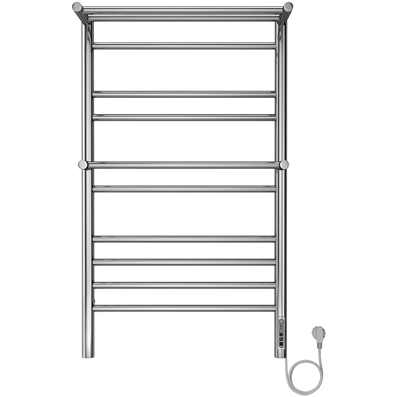 - Электрический полотенцесушитель с полочкой: Удобная полочка расширяет функциональность, позволяя разместить дополнительные аксессуары.