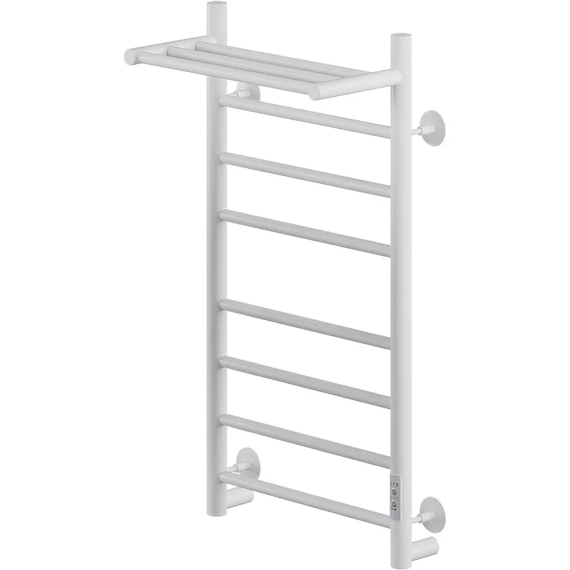 - Электрический полотенцесушитель с полкой: Удобная полочка позволяет разместить дополнительные аксессуары.