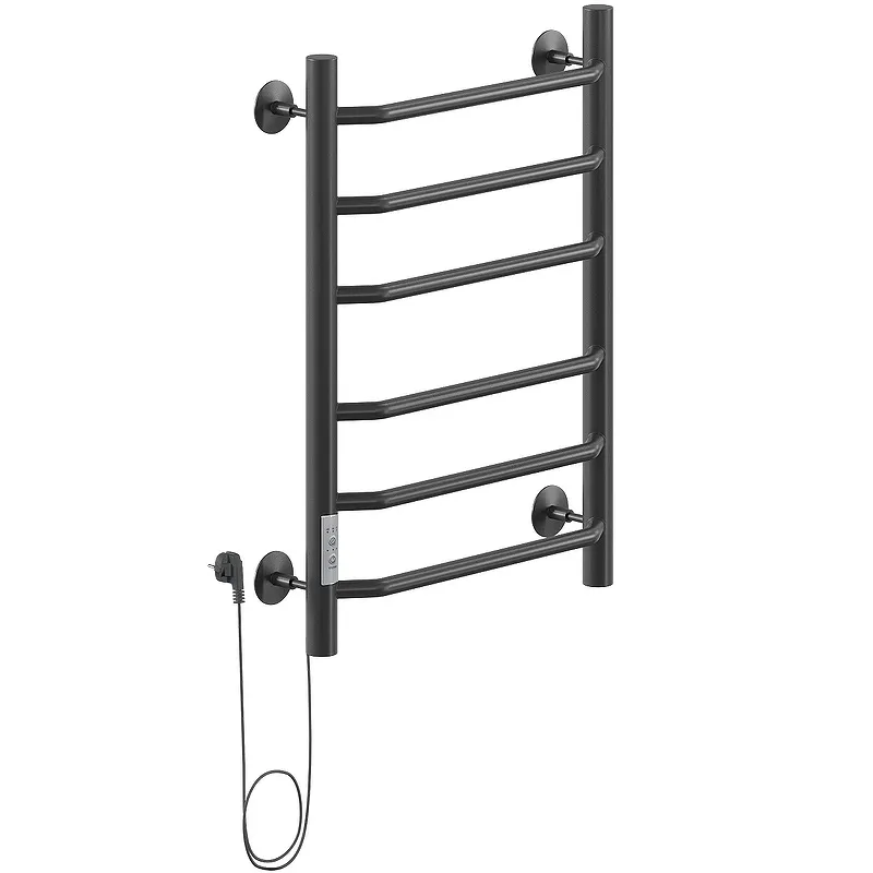 - Современный дизайн: Черный матовый цвет и форма "лесенка" делают данный электрический полотенцесушитель стильным дополнением к любой ванной комнате.