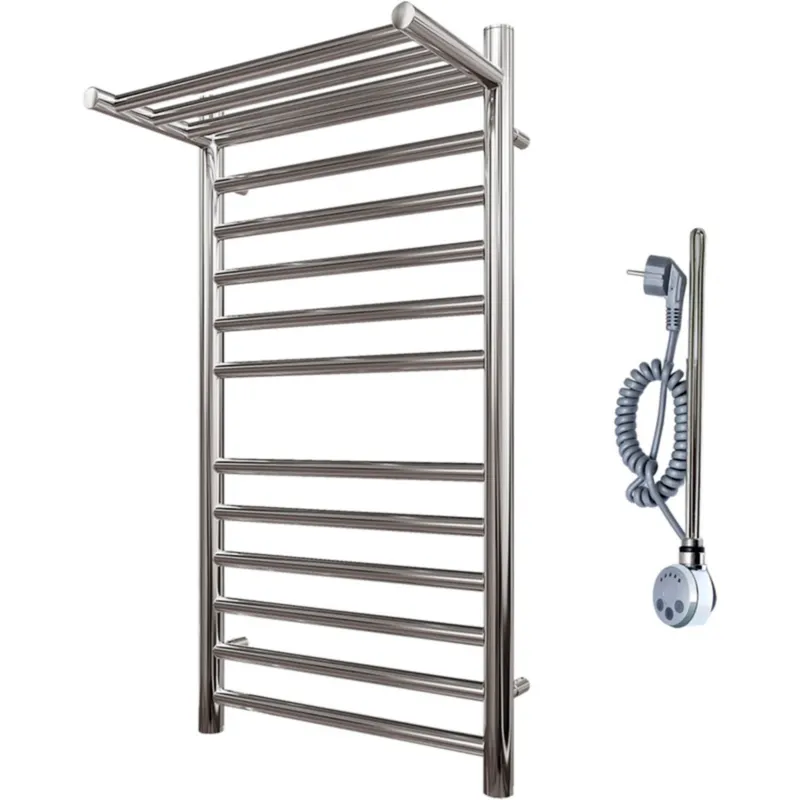 - Электрический полотенцесушитель с полкой: Удобная полочка для дополнительного хранения полотенец.