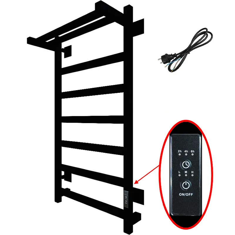 - Эффективное использование: Электрический полотенцесушитель с мощностью потребления всего 60 Вт экономит электроэнергию, обеспечивая при этом надежный обогрев.