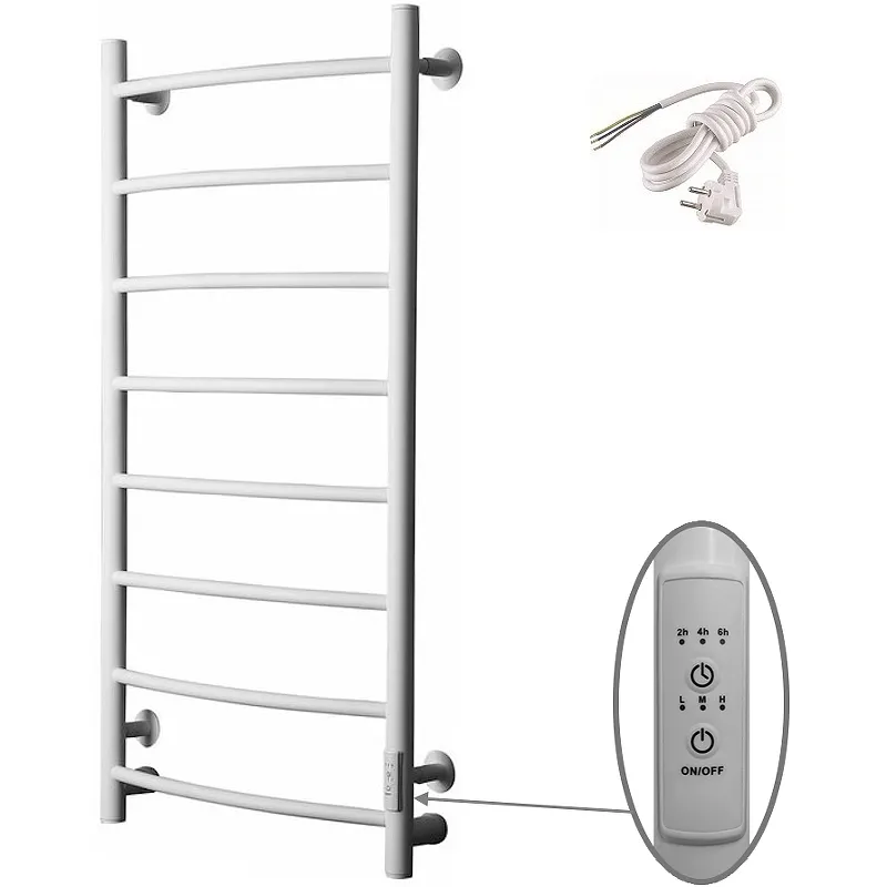 - Полотенцесушитель с таймером: Три режима работы (2, 4, 6 часов) для экономии энергии.