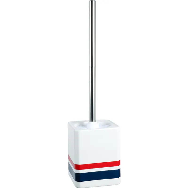 - Эстетичное сочетание цветов: Белый, синий и красный цвета делают ершик ярким акцентом в ванной комнате.