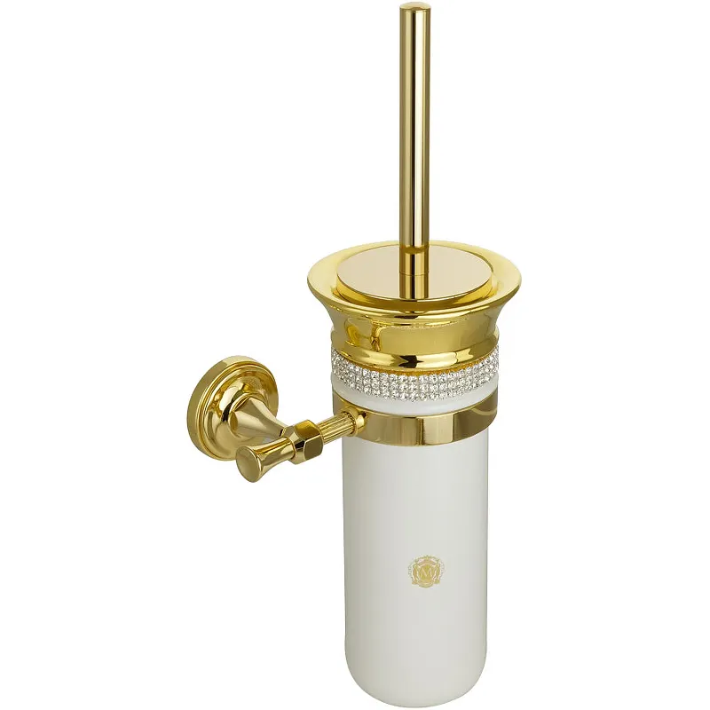 Ершик для унитаза Migliore Dubai 31234.Характеристики: Цвет: белый, золото. Материал: латунь, керамика, стекло. Поверхность: глянцевая. С кристаллами Swarovski. Диаметр розетки: 57 мм. Габариты (ШхВхД): 172 x 395 x 117 мм. Метод крепления: шурупы. Монтаж: подвесной. В комплекте поставки: Ершик для унитаза. Держатель. Комплект креплений.