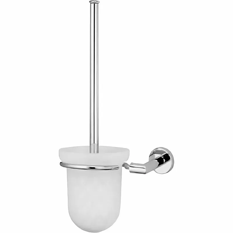 Ершик для унитаза Nofer Line 16518.B.Характеристики: Цвет: хром глянцевый. Материал держателя: Zamac (сплав цинка, алюминия, магния и меди). Материал емкости для ёршика: матовый акрил. Размеры (ШхВхД): 155х365х117.5 мм. Монтаж: настенный. В комплекте поставки: Ершик для унитаза. Крепежный материал.