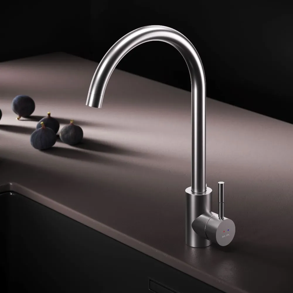 Встречайте пополнение экстраординарной коллекции X-Joy S – кухонные смесители с инновационной функцией экономии воды. Лаконичный облик продуктов принадлежит авторству ведущих дизайнеров AM.PM в Германии. Смеситель с функцией EcoStart —стильное и экологичное решение для вашего дома. При включении смесителя в центральном положении автоматически потечет холодная вода. Для включения горячей воды – необходимо повернуть ручку влево. Поворот ручки вправо заблокирован. Оптимизация диапазона действия ручки смесителя сокращает нерациональный расход воды до 40 в месяц. EcoStart сочетает удобство использования с экономией ресурсов заботясь о вашем бюджете и об окружающей среде. Эксклюзивное покрытие Everlast – вдвое превышает отраслевые стандарты по прочности и износостойкости. Сатиновый цвет сделает этот смеситель главным акцентом в любом интерьере. Высокий излив смесителя идеально подойдет для раковины любого размера и значительно упрощает такие задачи как наполнение больших емкостей. Сатиновый цвет сделает этот смеситель главным акцентом в любом интерьере. ""