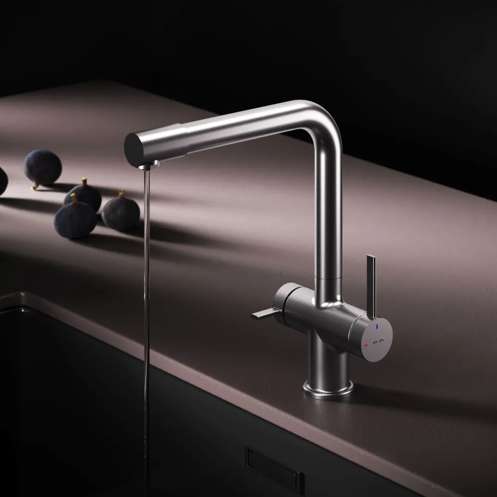 Func, смеситель для кухни с L-изливом с каналом для питьевой воды, сатин арт-F8F05711