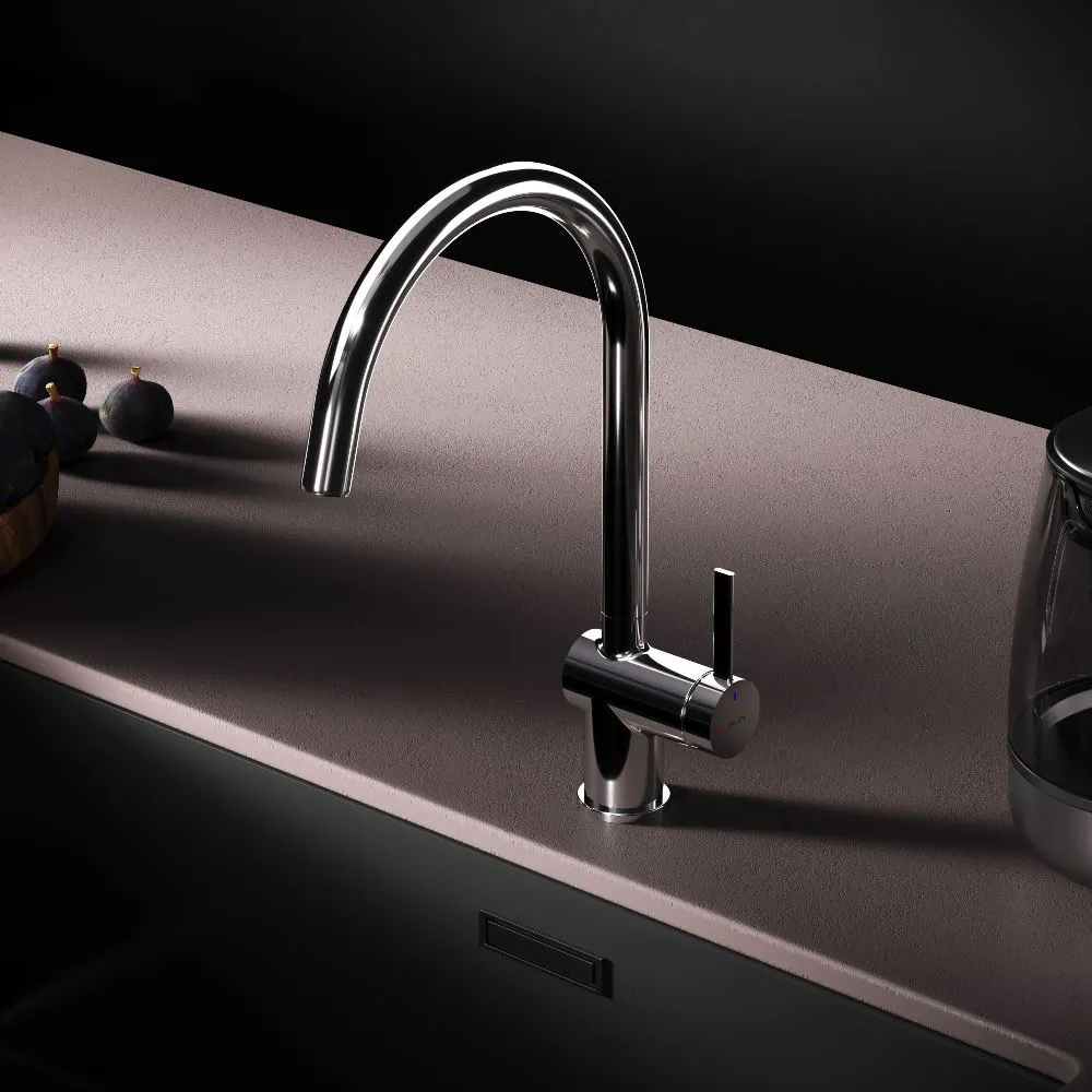 Встречайте долгожданное пополнение нашумевшей коллекции Func — кухонные смесители с оригинальными «фишками» характерными для всей коллекции. Дизайн характерный только для премиум-сегмента благодаря собственным дизайнерам бренда теперь представлен и в более доступной ценовой категории. Функция EcoStart — стильное и экологичное решение для вашего дома. При включении смесителя в центральном положении автоматически потечёт холодная вода. Для подачи горячей воды ручку нужно повернуть влево поворот вправо заблокирован. Оптимизация диапазона движения ручки смесителя позволяет сократить нерациональный расход воды до 40 в месяц. Дополнительным преимуществом функции EcoStart является возможность установить смеситель вплотную к стене что особенно важно в условии небольших кухонных пространств. Уникальная ручка в форме тонкого стика позволяет с легкостью управлять смесителем превращая повседневные задачи в настоящее удовольствие. Эксклюзивное покрытие Everlast вдвое превышает отраслевые стандарты по прочности и износостойкости. Ювелирный блеск и долговечность покрытия достигаются по стандарту Chrome Plating Standard NSS 80H. ""