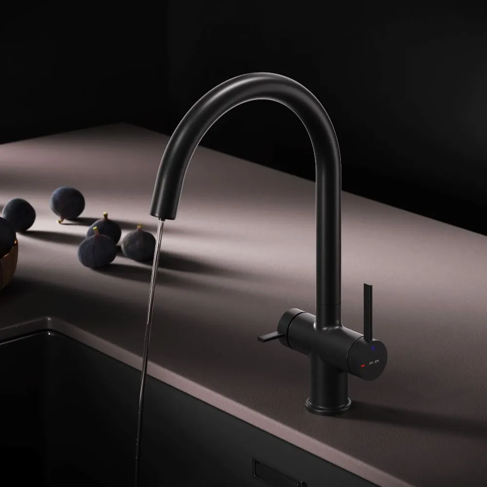 Func, смеситель для кухни с C-изливом с каналом для питьевой воды, черный арт-F8F07722