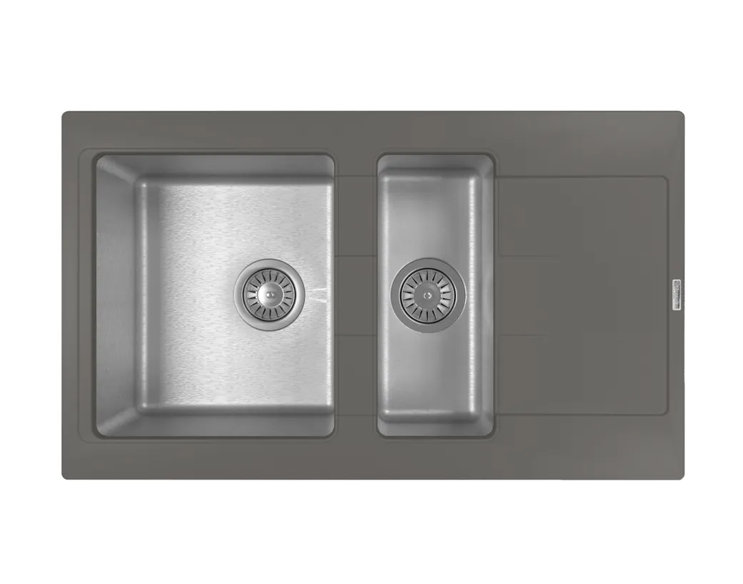 - Кухонная мойка из кварца: прочный материал обеспечивает долговечность и устойчивость к повреждениям.