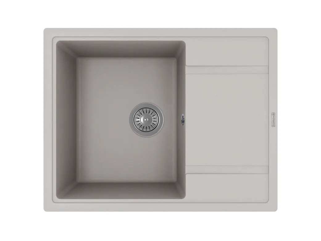 - Прямоугольная мойка из кварца: кварцевый материал обеспечивает устойчивость к царапинам и химическим веществам, продлевая срок эксплуатации сантехники.