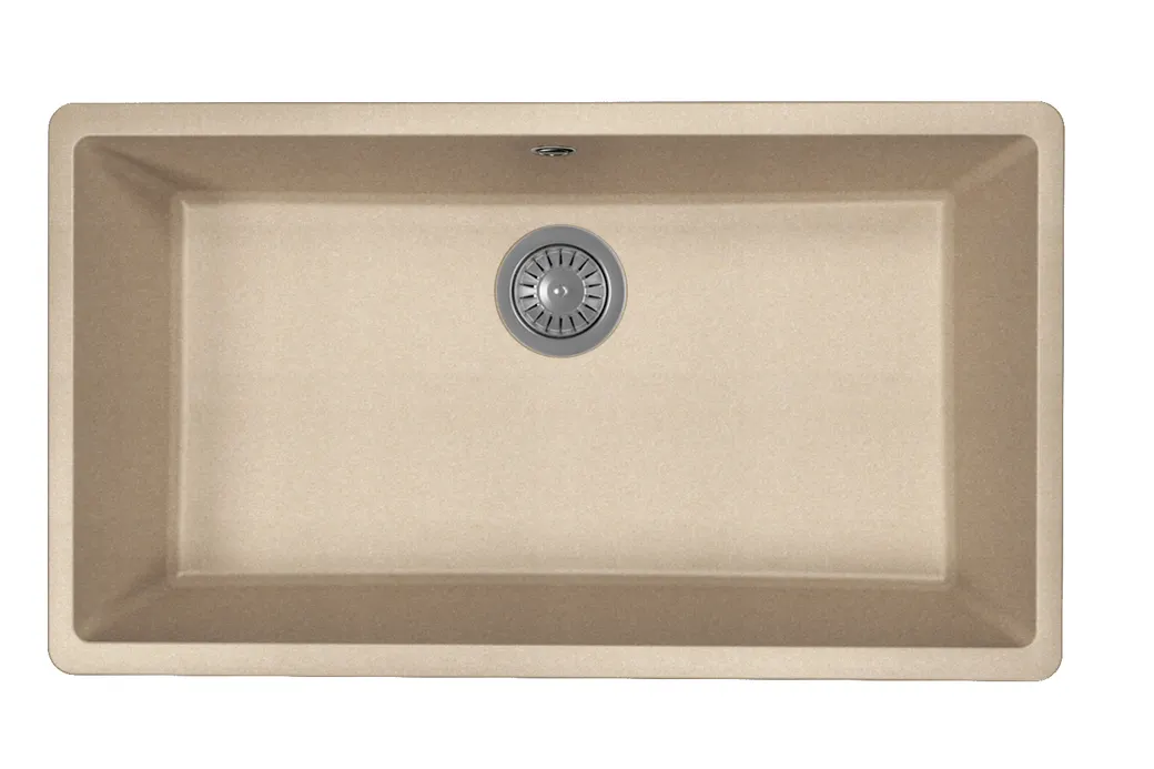 - Мойка из кварца: Высокая прочность и устойчивость к царапинам обеспечивают долговечность.