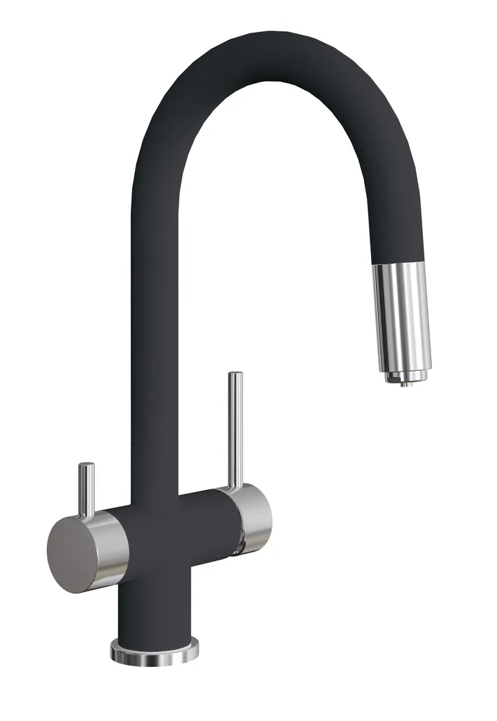 - Элегантный дизайн: Цвет антрацит добавляет смесителю утонченность и современность, идеально подходя для стильных кухонь.