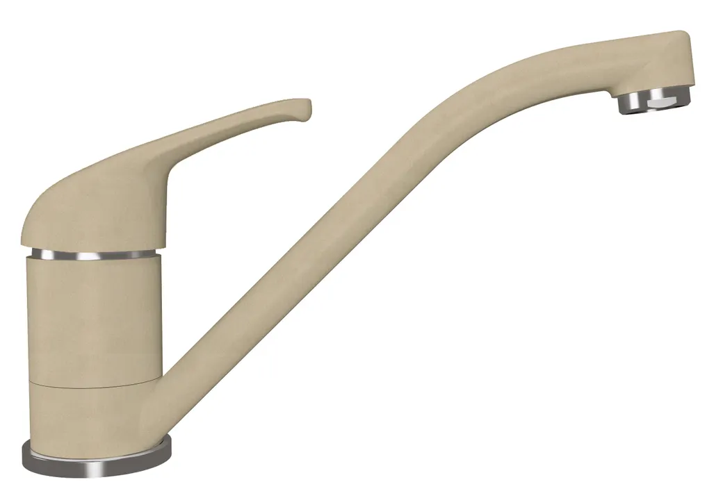 - Эстетика и стиль: Бежевый цвет смесителя гармонично вписывается в интерьер кухни, придавая ему современный вид.