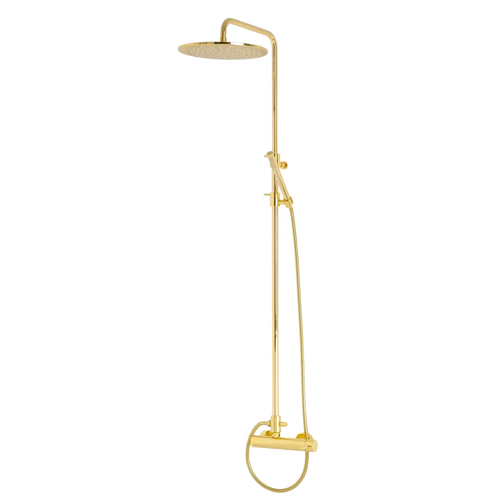 FORTIS GOLD Душ.настенный гарнитур (см-ль д/душа-упр.сбоку/колонна/верхн.душ/шланг/ручн.душ),золото арт-31840