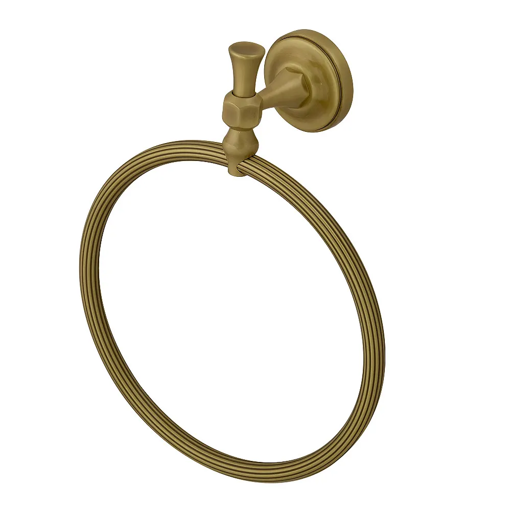 Кольцо серии FORTUNA бренда MIGLIORE предназначено для небольшого полотенца для рук или для гигиены. Очень удобно разместить рядом с раковиной или биде. Кольцо имеет небольшой диаметр 21,5 мм и станет функциональным украшением в любой ванной комнате в классическом стиле. Материал — латунь, покрытие цвета бронза. Внимание: бронзовое покрытие достаточно деликатное и для ухода рекомендуется протирать изделие мягкой безворсовой тряпочкой с мыльным раствором и вытирать насухо или использовать чистящее средство бренда MIGLIORE для смесителей и аксессуаров с деликатными покрытиями бронза, золото, медь.