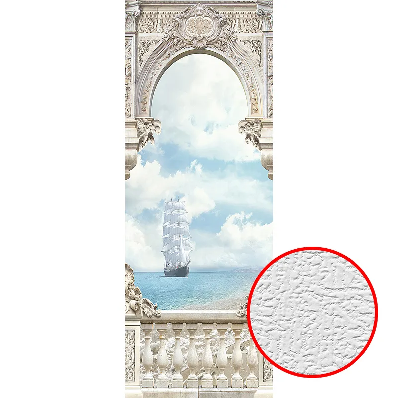 Фотообои Divino T-031 Фактура холст Винил на флизелине (1*2,7) Бежевый/Голубой, Корабль