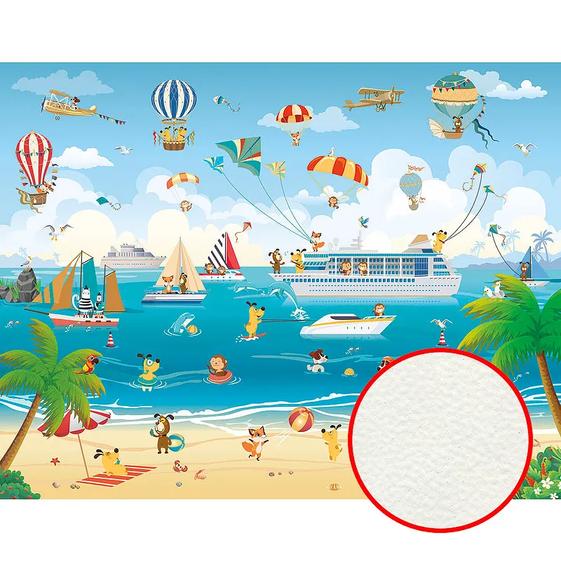 Фреска детская Ortograf Детские 21169 Фактура флок FLK Флизелин (3,85*3) Разноцветный, Корабли/Люди/Море