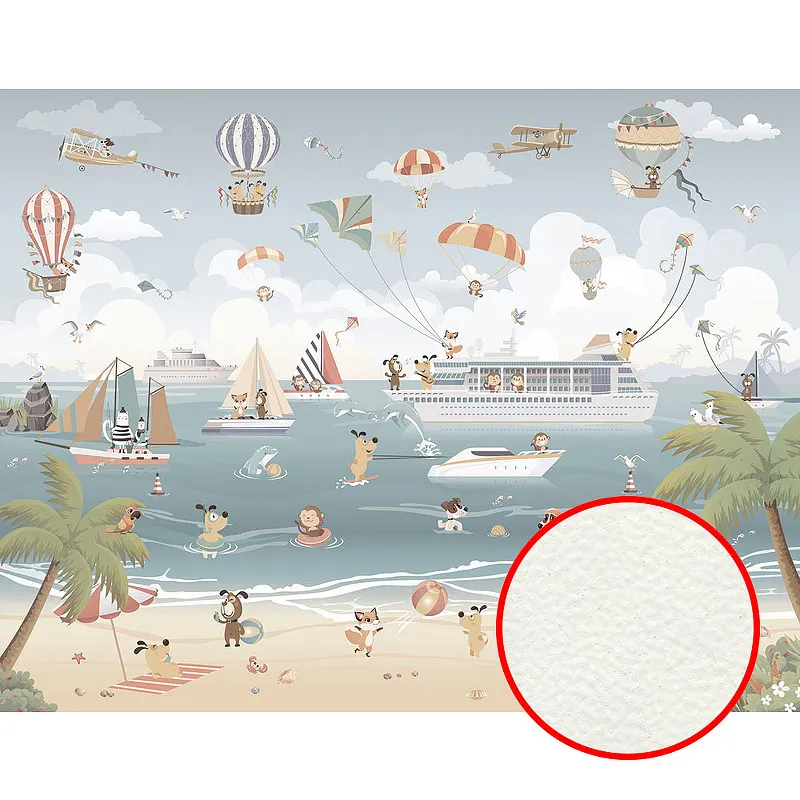 Фреска детская Ortograf Детские 21170 Фактура флок FLK Флизелин (3,85*3) Голубой/Бежевый/Серый, Корабли/Люди/Море
