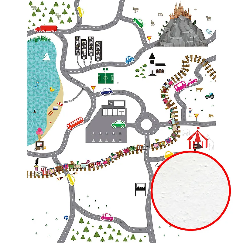 - Яркий разноцветный дизайн: Разноцветная фреска с рисунком автомобилей и карт стимулирует воображение и интерес ребенка.
