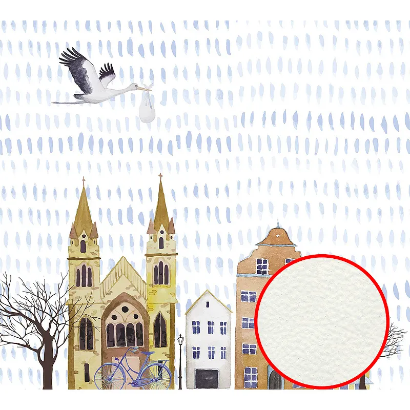 - Флизелиновое полотно с текстурированным напылением и рисунком "Домики/Птицы".