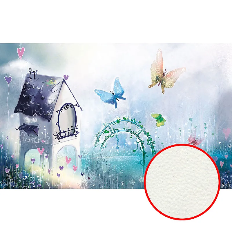 Фреска детская Ortograf Для малышей 30888 Фактура флок FLK Флизелин (4,3*2,7) Бирюзовый/Голубой/Фиолетовый, Домики/Бабочки