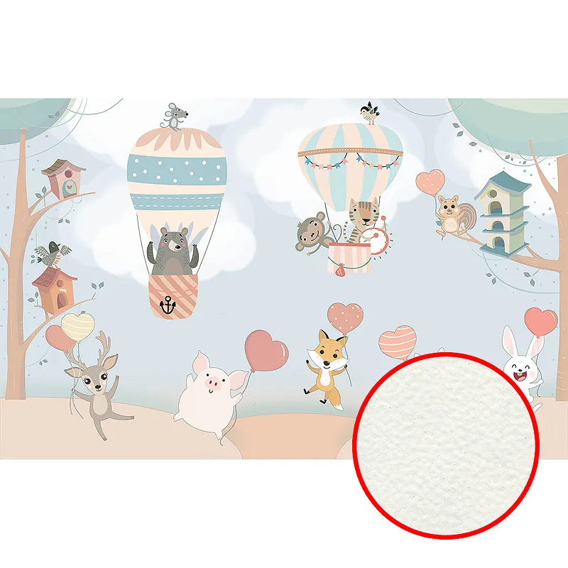 Фреска детская Ortograf Для малышей 6763 Фактура флок FLK Флизелин (4,3*2,7) Голубой/Разноцветный, Животные/Воздушные шары