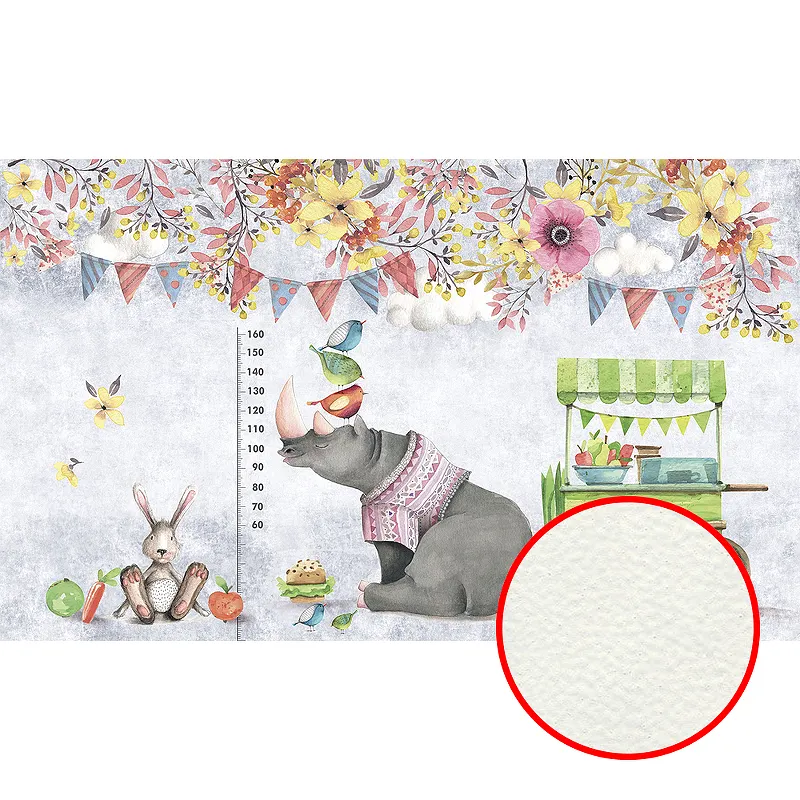 Фреска детская Ortograf Для малышей 6764 — идеальный выбор для оформления детской комнаты. Изготовленная из флизелина, данная фреска имеет флоковую фактуру, придающую поверхности мелкозернистый рельеф. Размер полотна составляет 4,5х2,7 метра, что позволяет создать уникальный интерьер с изображениями животных и цветов. Фреска отлично подходит для внутреннего использования и допускает лёгкую влажную уборку.