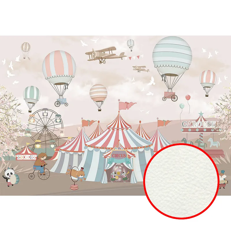 Фреска детская Ortograf Для малышей 6770 Фактура флок FLK Флизелин (4*2,7) Бежевый/Розовый/Зеленый, Животные/Воздушные шары/Мультимедия