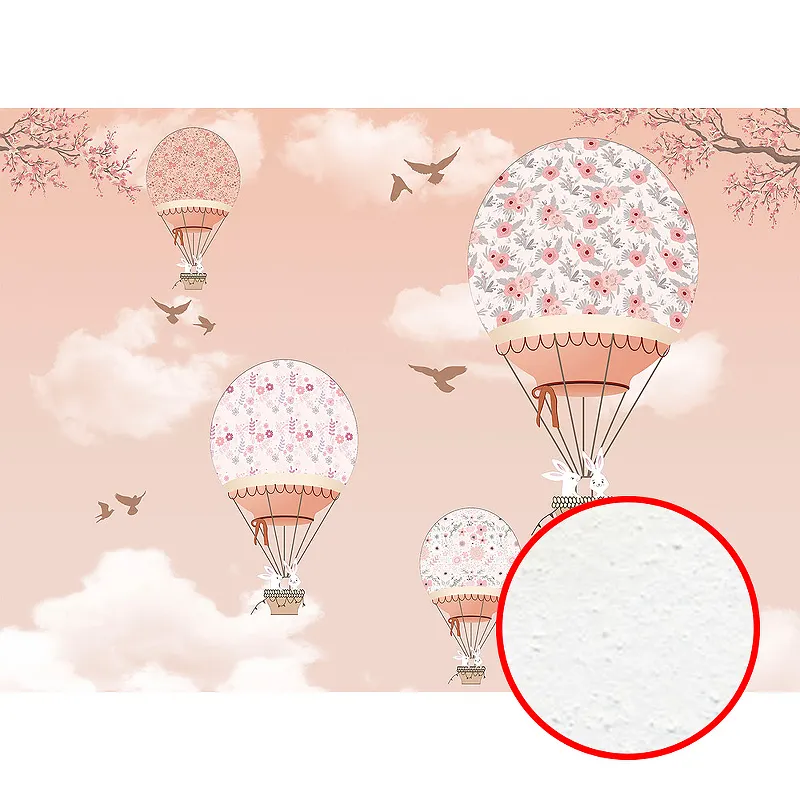 Фреска детская Ortograf Для самых маленьких 32907 Фактура бархат FX Флизелин (3,7*2,7) Розовый, Воздушные шары