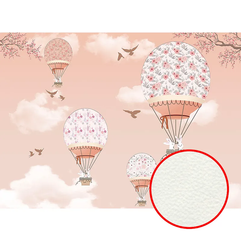 Фреска детская Ortograf Для самых маленьких 32907 Фактура флок FLK Флизелин (3,7*2,7) Розовый, Воздушные шары