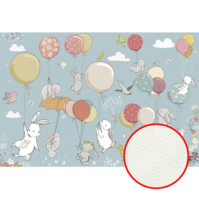 Фреска детская Ortograf Для самых маленьких 32928 Фактура флок FLK Флизелин (4*2,7) Голубой/Разноцветный, Животные/Воздушные шары
