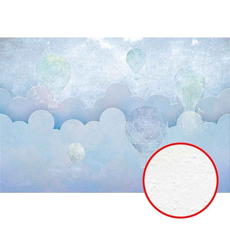 Фреска детская Ortograf Для самых маленьких 32962 Фактура бархат FX Флизелин (4*2,7) Голубой, Облака/Воздушные шары