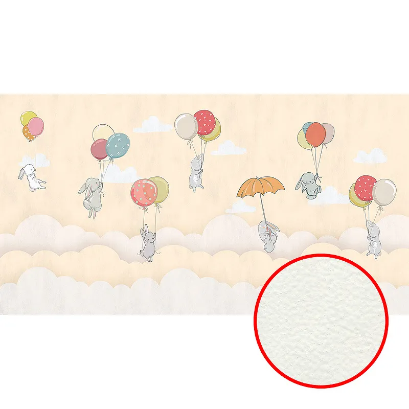 Фреска детская Ortograf Для самых маленьких 33711 Фактура флок FLK Флизелин (5*2,7) Бежевый/Разноцветный, Животные/Воздушные шары/Облака