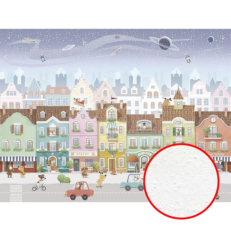 - Флизелиновая фреска с бархатистой текстурой: Сочетание материала и фактуры создаёт особую атмосферу и комфорт в детской комнате.