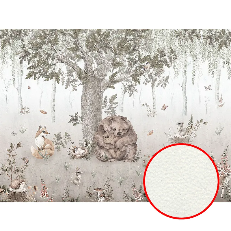 Фреска детская Ortograf Little Friends 34352 Фактура флок FLK Флизелин (4*3) Бежевый/Коричневый, Деревья/Животные