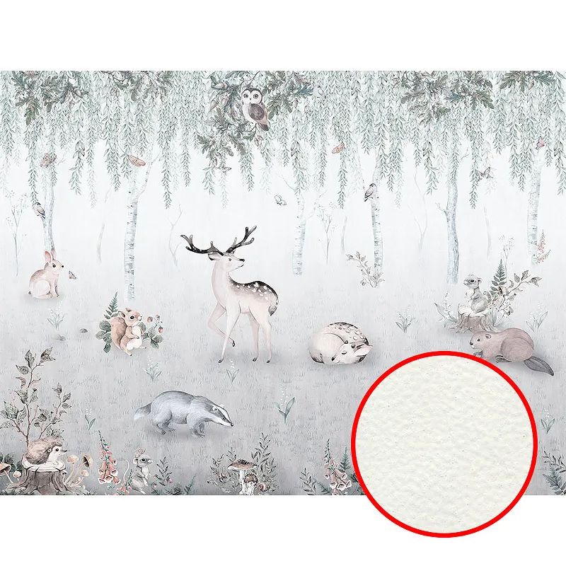 Фреска детская Ortograf Little Friends 34356 Фактура флок FLK Флизелин (4*3) Серый/Зеленый, Животные