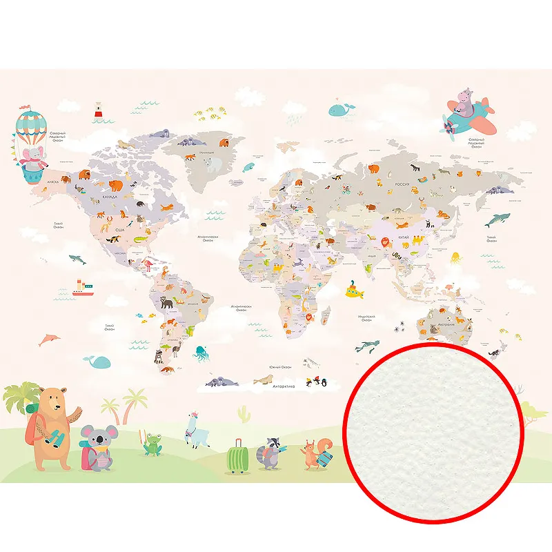 Фреска детская Ortograf Little Friends 34382 Фактура флок FLK Флизелин (4*3) Бежевый/Розовый/Зеленый, Карты/Животные