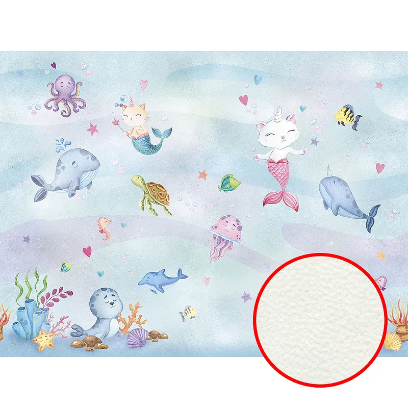 Фреска детская Ortograf Little Friends 34388 Фактура флок FLK Флизелин (4*3) Голубой/Разноцветный, Рыбы/Мультимедия
