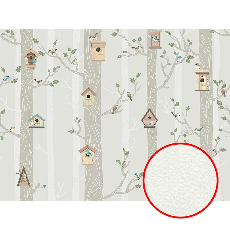 Фреска детская Ortograf Little Friends 34404 Фактура флок FLK Флизелин (4*3) Бежевый/Зеленый, Деревья/Птицы