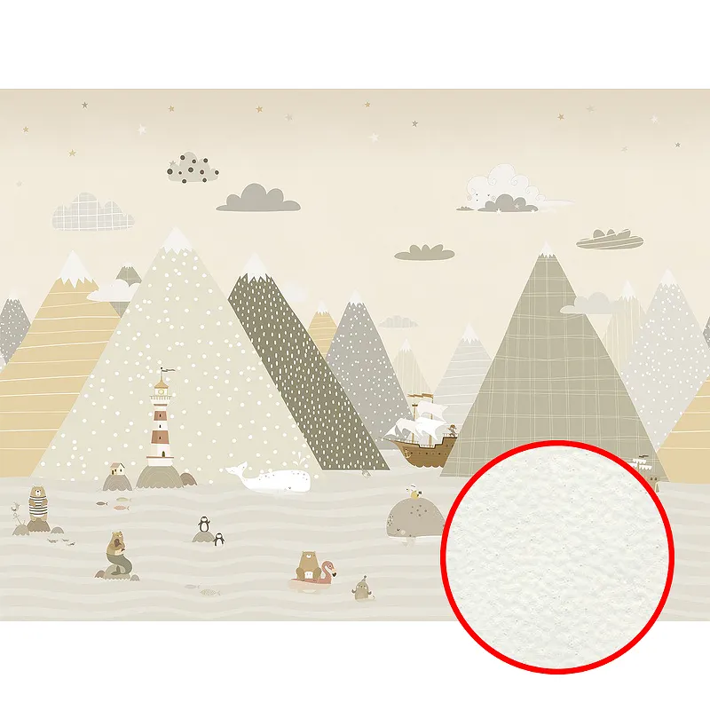Фреска детская Ortograf Little Friends 34414 Фактура флок FLK Флизелин (4*3) Бежевый, Горы/Животные/Море