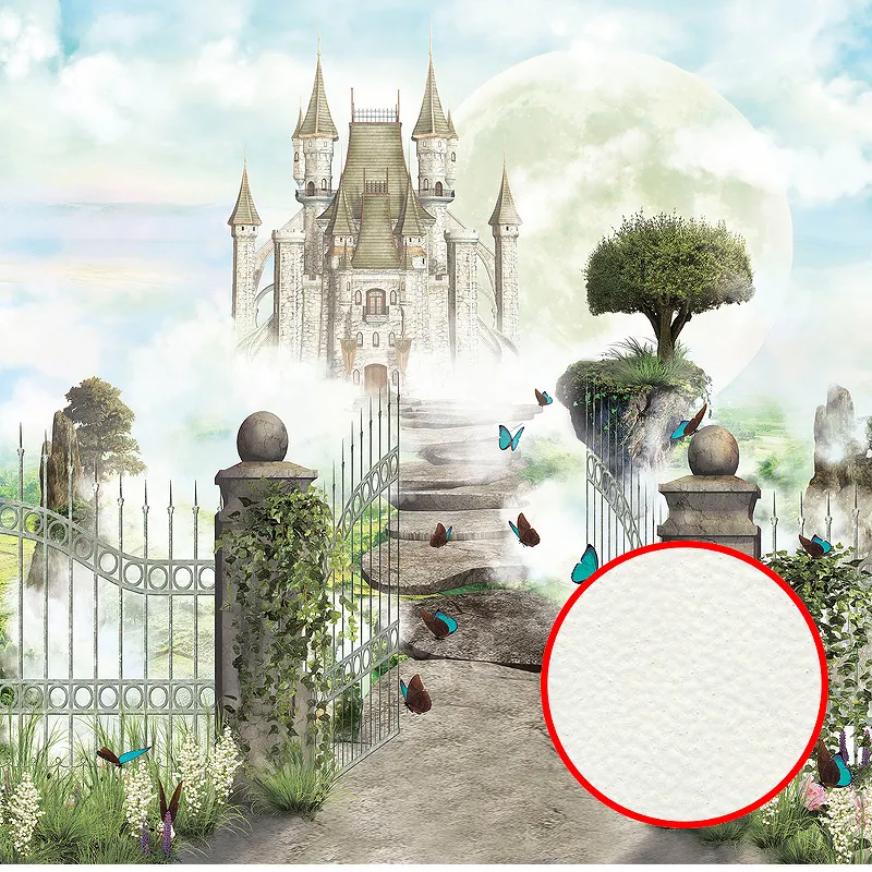 Фреска детская Ortograf Сказочная страна 30776 Фактура флок FLK Флизелин (2,7*2,7) Бежевый/Голубой/Зеленый, Замки