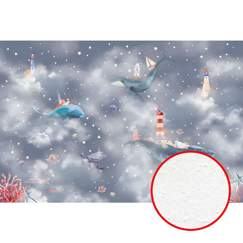 Фреска детская Ortograf Сказочная страна 34141 Фактура бархат FX Флизелин (4,5*3) Серый, Животные/Облака