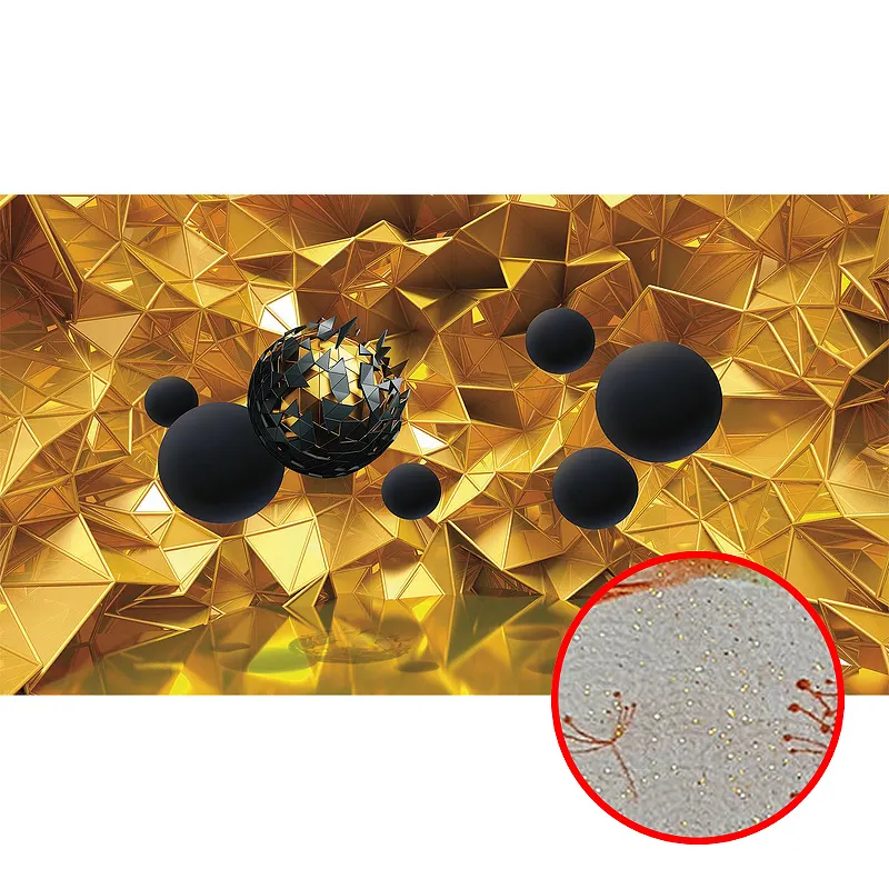 Фреска Ortograf 3D 21097 — это идеальное решение для создания уникального интерьера. Декоративные фрески с абстрактным рисунком в цветах золота и черного станут стильным акцентом в вашем помещении. Флизелиновая основа с текстурированным напылением придаёт поверхности легкий бархатистый эффект и золотой блеск.