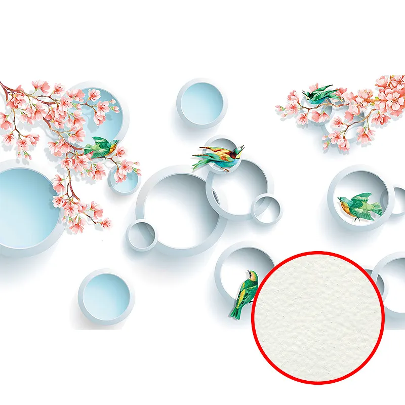 Фреска Ortograf 3D 30739 Фактура флок FLK Флизелин (4,3*2,7) Белый/Розовый/Голубой, Цветы/Птицы/Абстракция