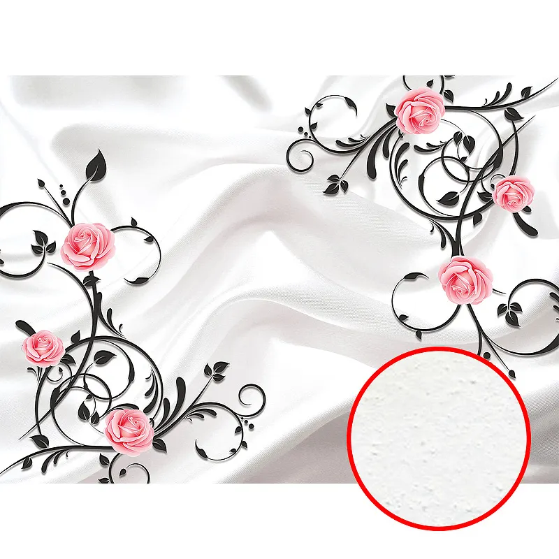 Преимущества Фреска Ortograf 3D 30741 Фактура бархат FX Флизелин (3,7*2,7) Белый/Розовый/Черный, Цветы/Абстракция