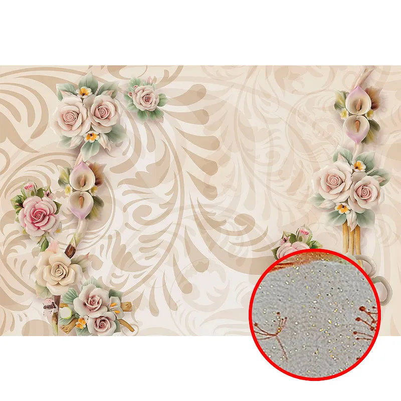 Фреска Ortograf 3D 30744 включает флизелиновую основу с декоративной штукатуркой, имитирующей бархат.